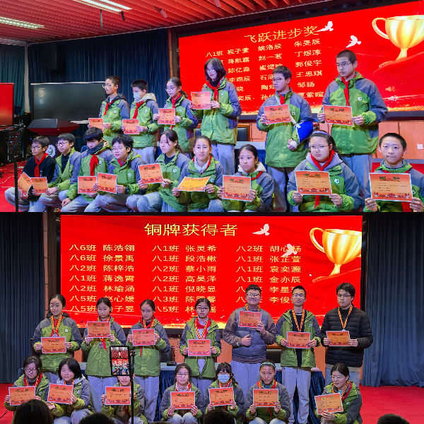 大会伊始,期中表彰颁奖仪式正式拉开帷幕。现场先后为斩获“飞跃进步奖”及“金牌”“银牌”“铜牌”的优秀学子们颁发荣誉,获奖同学依次登台,接过班主任与校领导手中的荣誉证书,也收下了这份沉甸甸的殷切勉励。台下每一次热烈的掌声,既是对奋斗者的由衷致敬,更是对全体同学的鼓舞与鞭策,让奋进的种子在每个人心中悄然扎根。