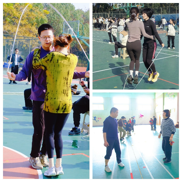 “双人一心,绳采飞扬”双人跳绳中,余小雪老师与周雯婷老师为一组,许军老师与潘琼老师为一组,他们配合默契,绳影翻飞间如蝴蝶穿花,以稳定的节奏在60秒内创下佳绩。