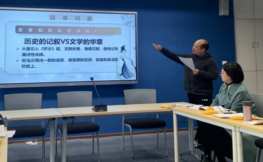 紧接着,张夕老师带来专题讲座《美的体悟与创造——探寻史学文本之美》。他以屈原为靶,从风骨、修辞、史学、哲思四重维度拆解文本之美,最终追问“人当为何而生”,提醒老师:美育不是看风景,而是造风景;当学生用写作、演讲、戏剧重新编码文本,美才真正完成。